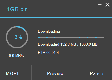 Resume broken/dead downloads caused by connection problem, power failure or session expiration.